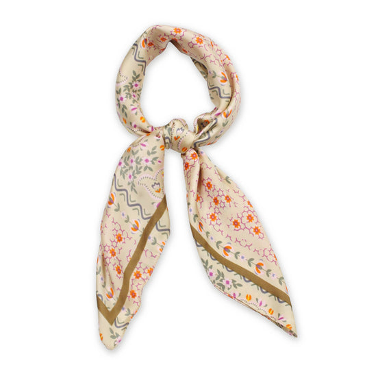 Floral Print Satin Square Scarf/Headwrap/Tube top: Beige Floral