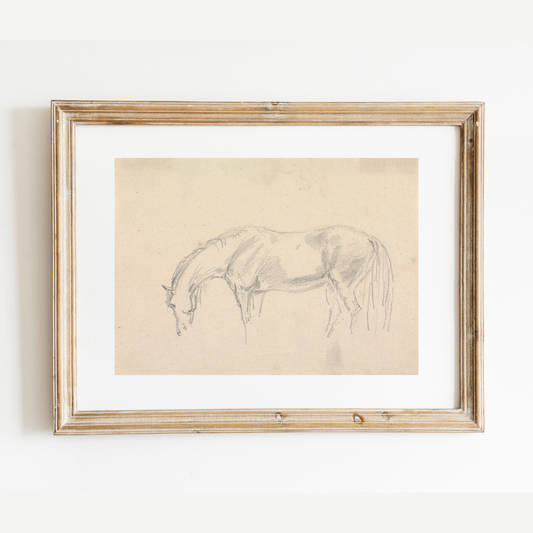 A Horse Grazing Sketch Antique Art Print: 8x10