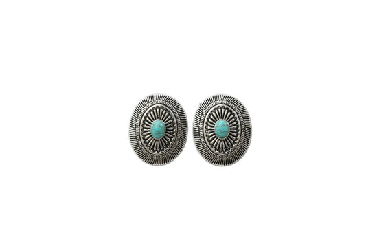 1.5" Oval Concho Post Earrings with Turquoise Accent