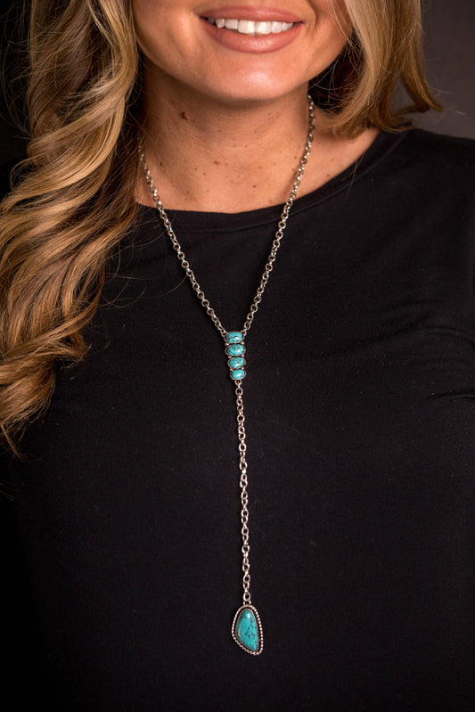 20" Burnished Silver Chain Y Necklace with Turquoise Accents