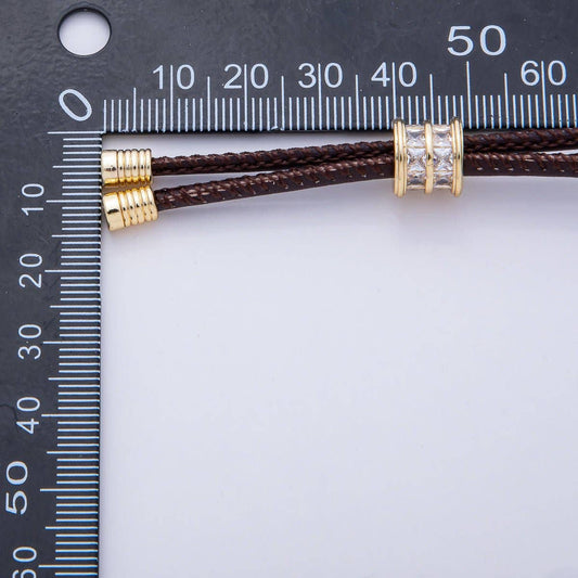18K Gold Filled 3mm Dark Brown Leather Bolo Chain Baguette CZ Bead 18 Inch Necklace: Brown