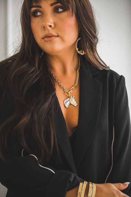 18" 18K Two Toned Plated Chain Necklace with Horse Pendant