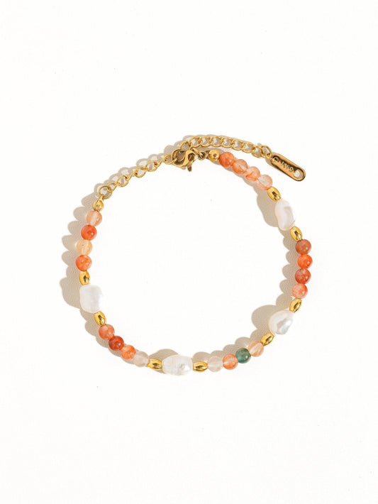 18K Bohemian Handmade Stone and Bead Bracelet: Jolin-Rose