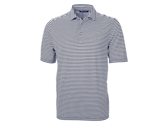 Cutter & Buck Virtue Eco Pique Stripe Recycled Mens Polo: Navy Blue
