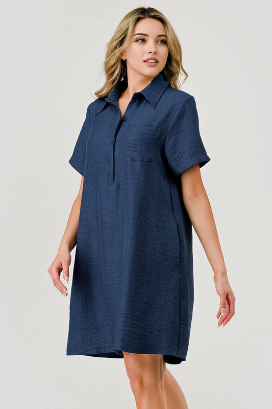 Ellie Casual Collared Game Day Shift Dress Navy