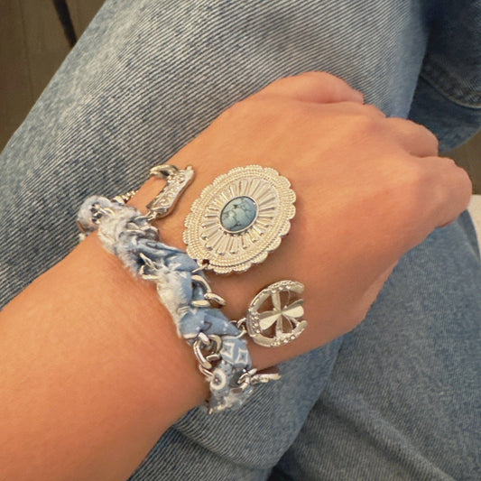 18K Bohemian Handmade Stone and Bead Bracelet: Jolin-Rose