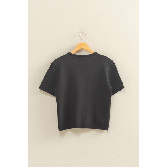 Atelier Cable Knit Short Sleeve Sweater Top: BLACK