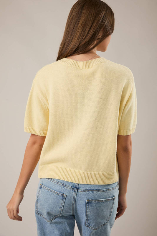 Butter Short Sleeve Sweater Cardigan: Lt Yellow