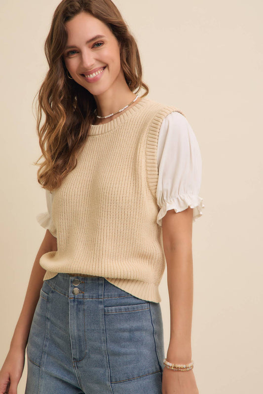 Starlit Sleeveless Oversized Cable Knit Sweater Vest: BLACK