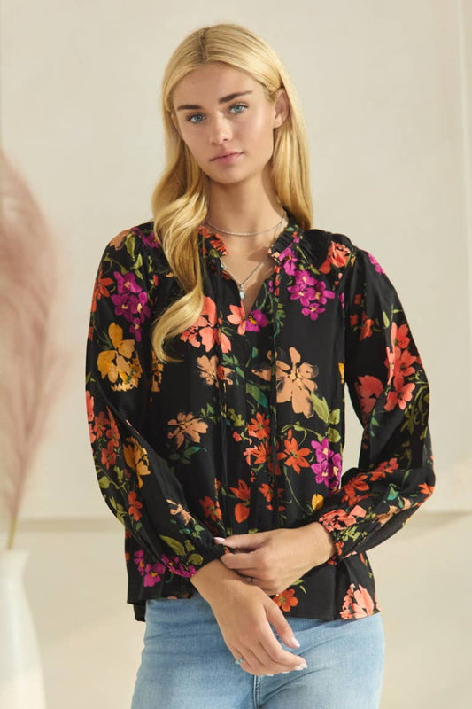 Maggie Square Neck Front Tie Long Sleeve Check Top: Brown Cream