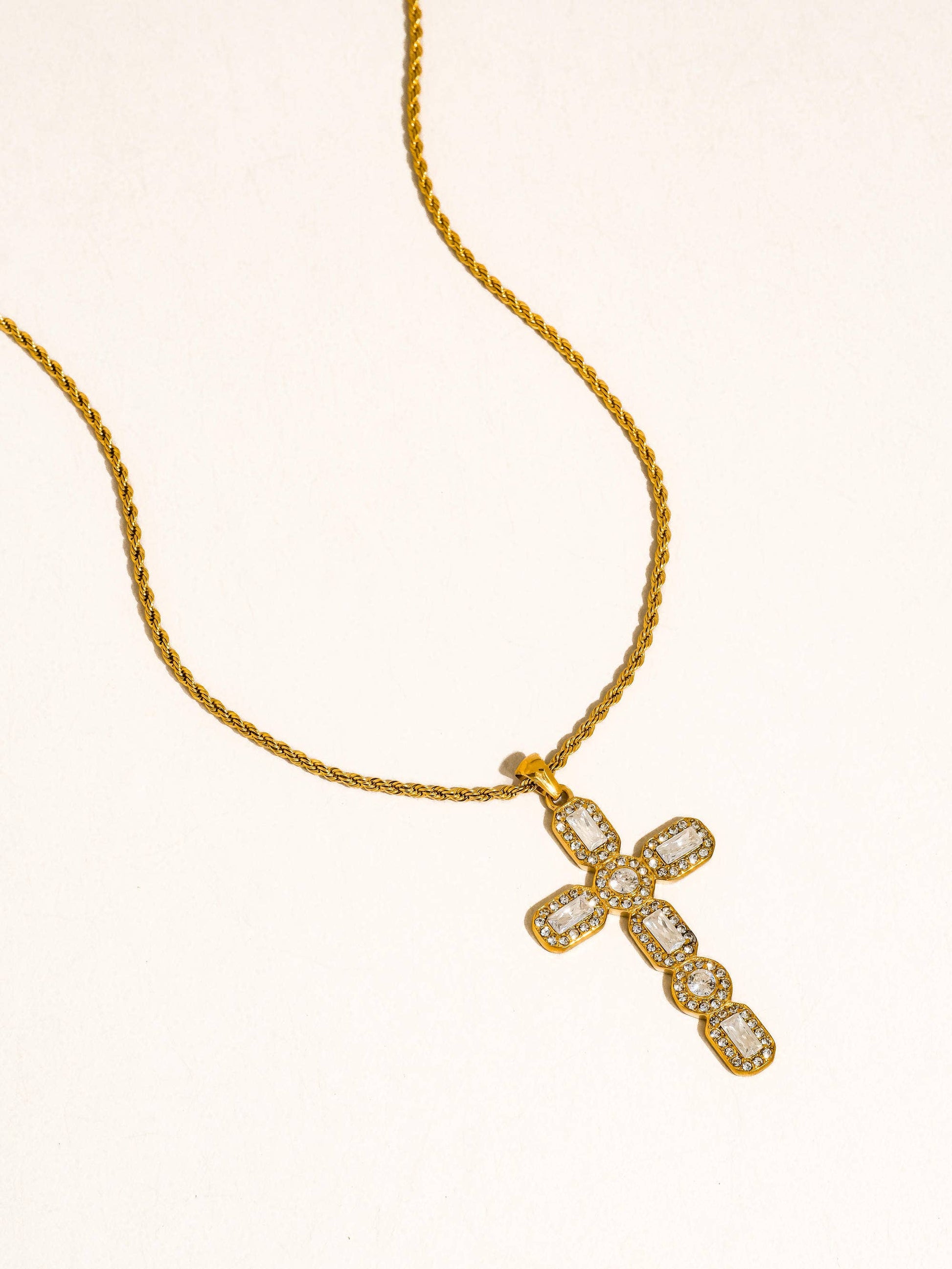 Belrose 18K Gold Non-Tarnish CZ Cross Necklace: Yellow Gold