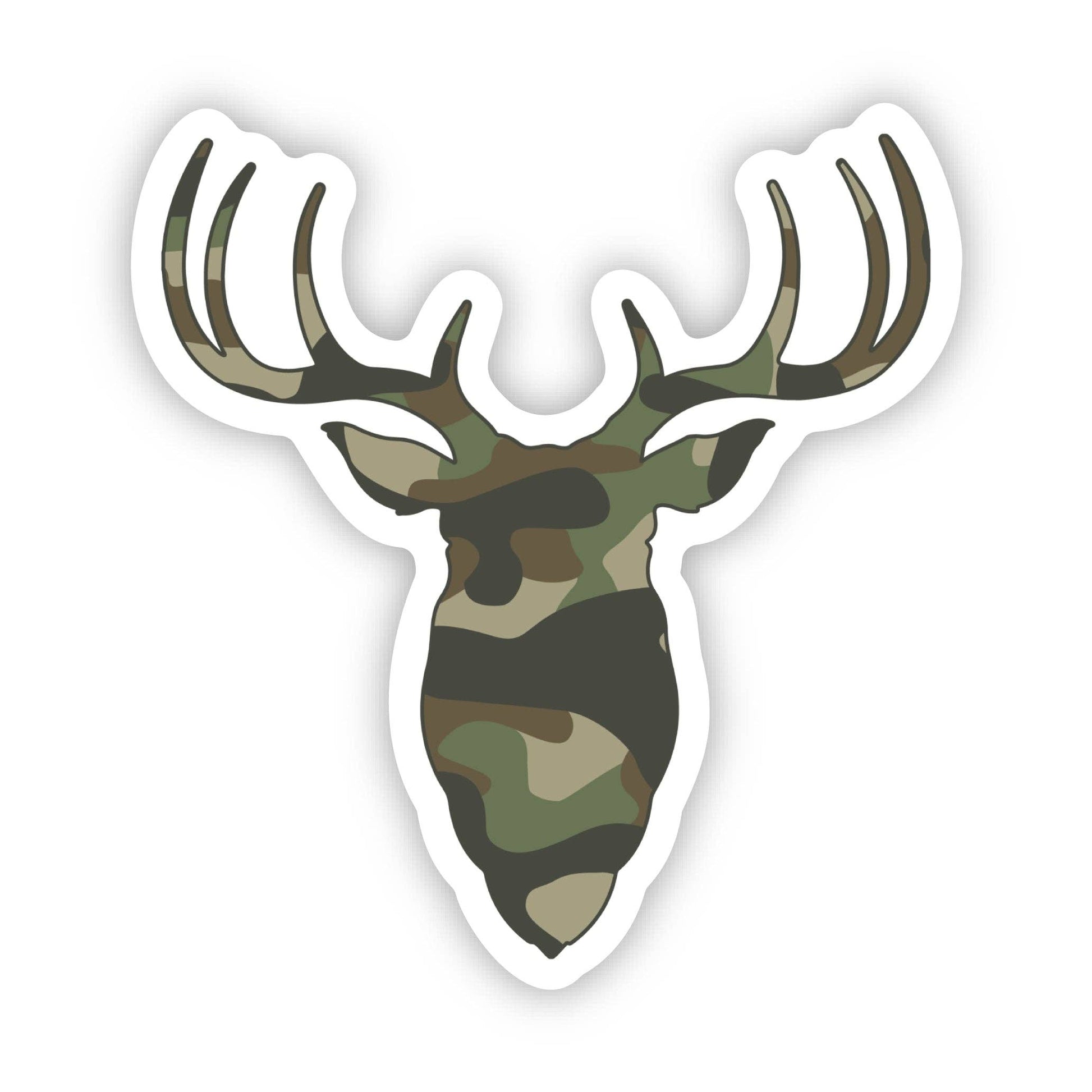 Share your love for camo and deer hunting with our camo stag deer sticker. High quality vinyl sticker. Great to decorate laptops, water bottles, car windows, coolers, suitcases, bikes, kayaks, phone cases, journals, and more.