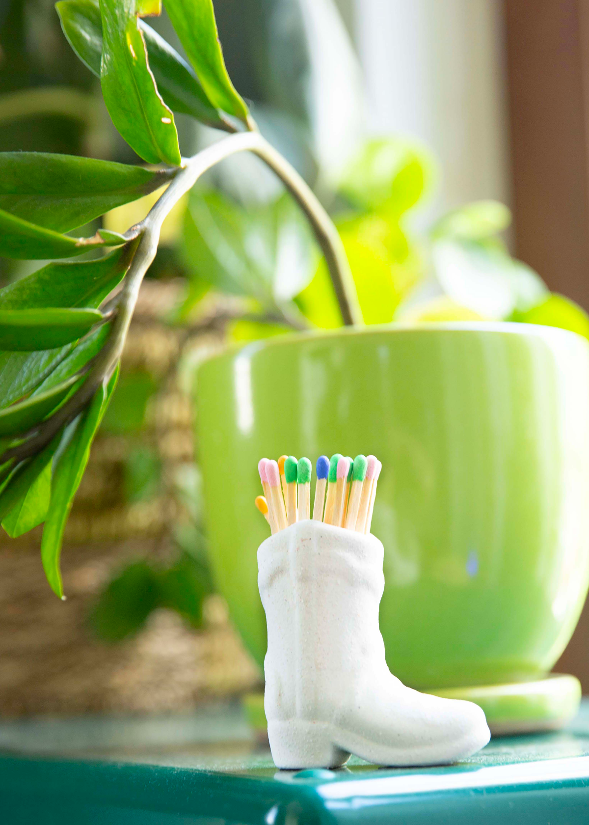 Includes: 12 colorful safety matches with ceramic cowboy boot match holder
