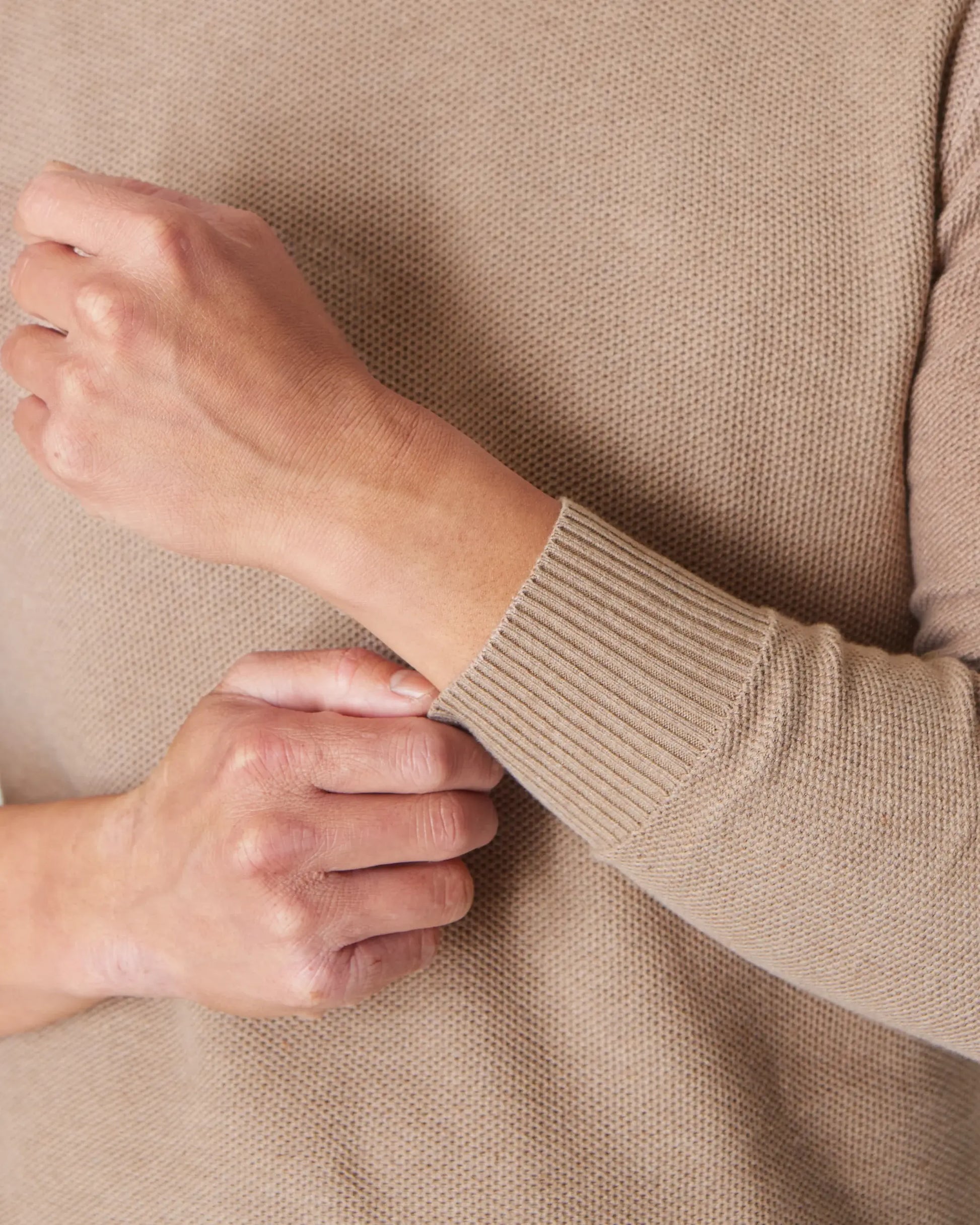 The perfect light layer for those between-season days and nights. Textured cotton sweater with added stretch for a slim fit with relaxed feel. Wears great when paired with our classic crew tee underneath.