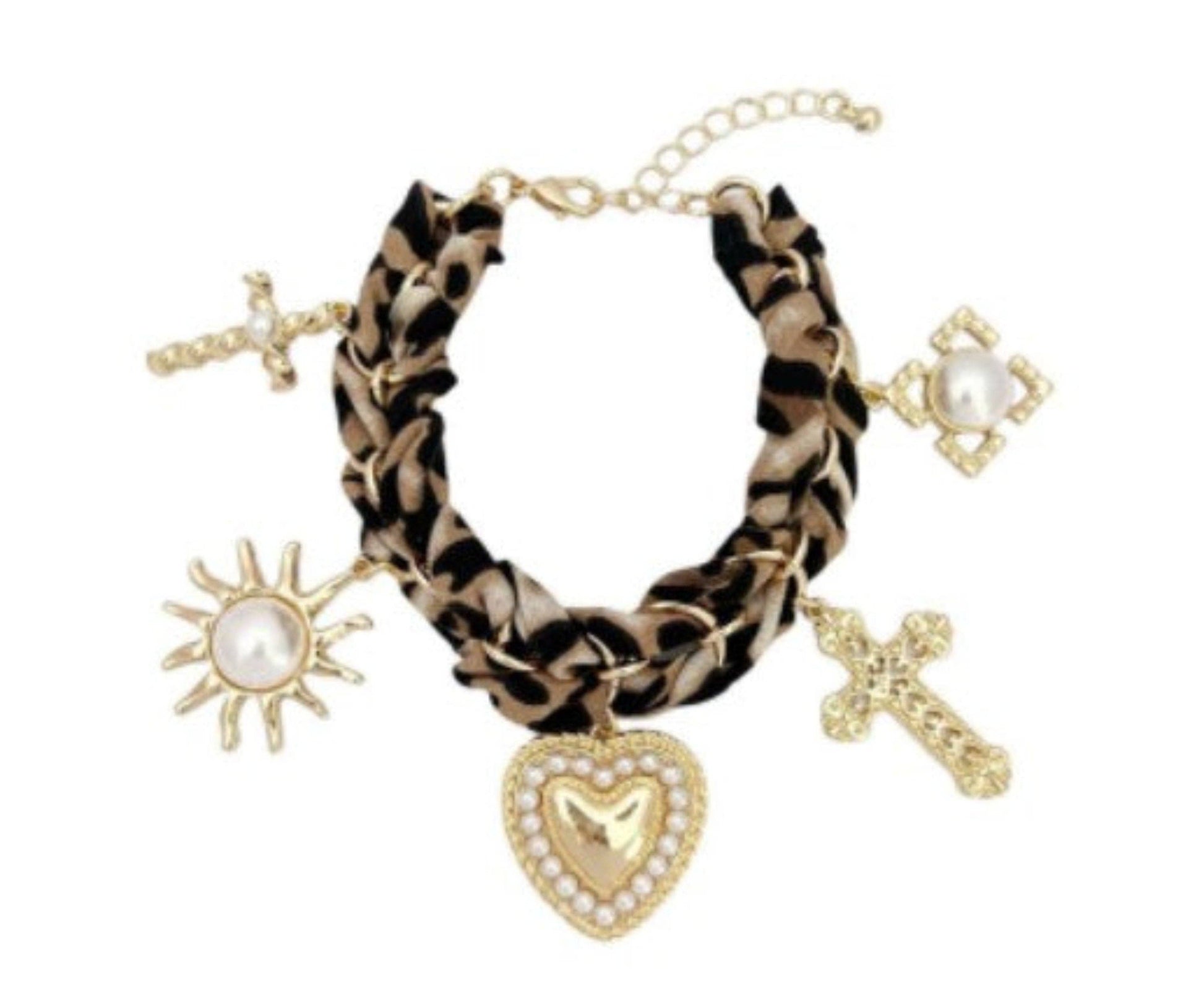 Add a romantic twist to your wrist with the Divine Heart Charm Scarf Bracelet. This elegant accessory features a soft printed scarf paired with a delicate heart charm, creating the perfect blend of sweetness and style.