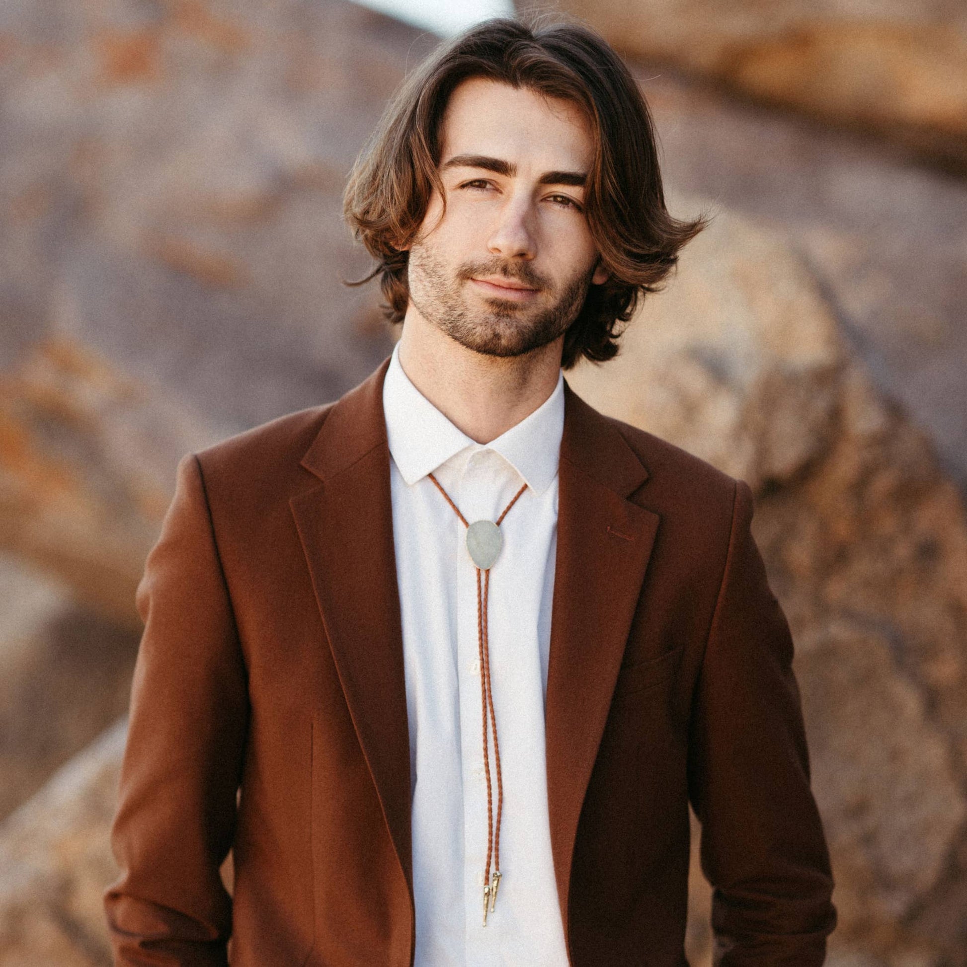 This boho western style bolo tie necklace features an aquamarine sparkling gemstone with silver trim on braided vegan leather with silver bolo tips. The stone slides up and down to adjust size and increase the opening to easily get the necklace on and off.