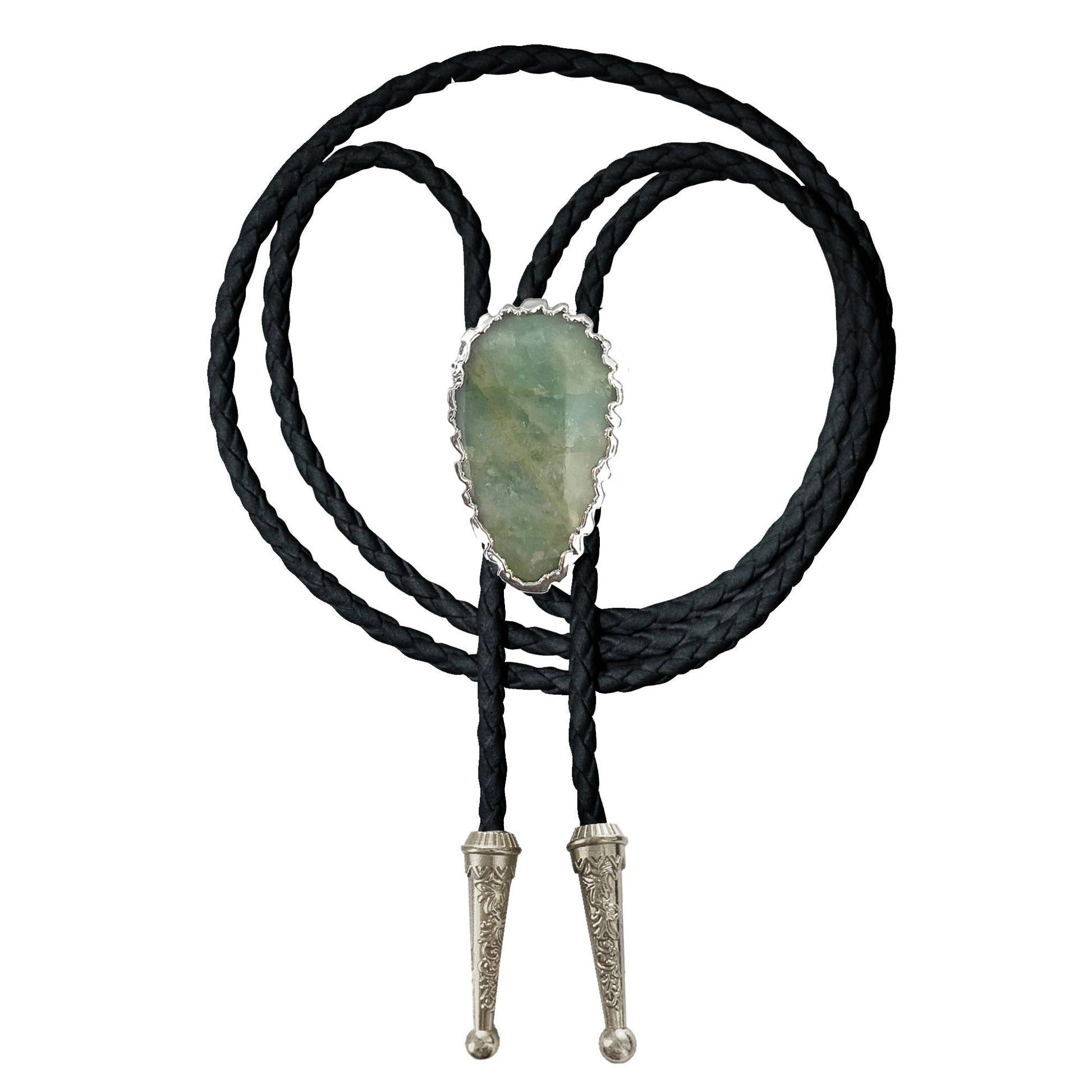 Gemstone Bolo Tie - Aquamarine Black / Silver