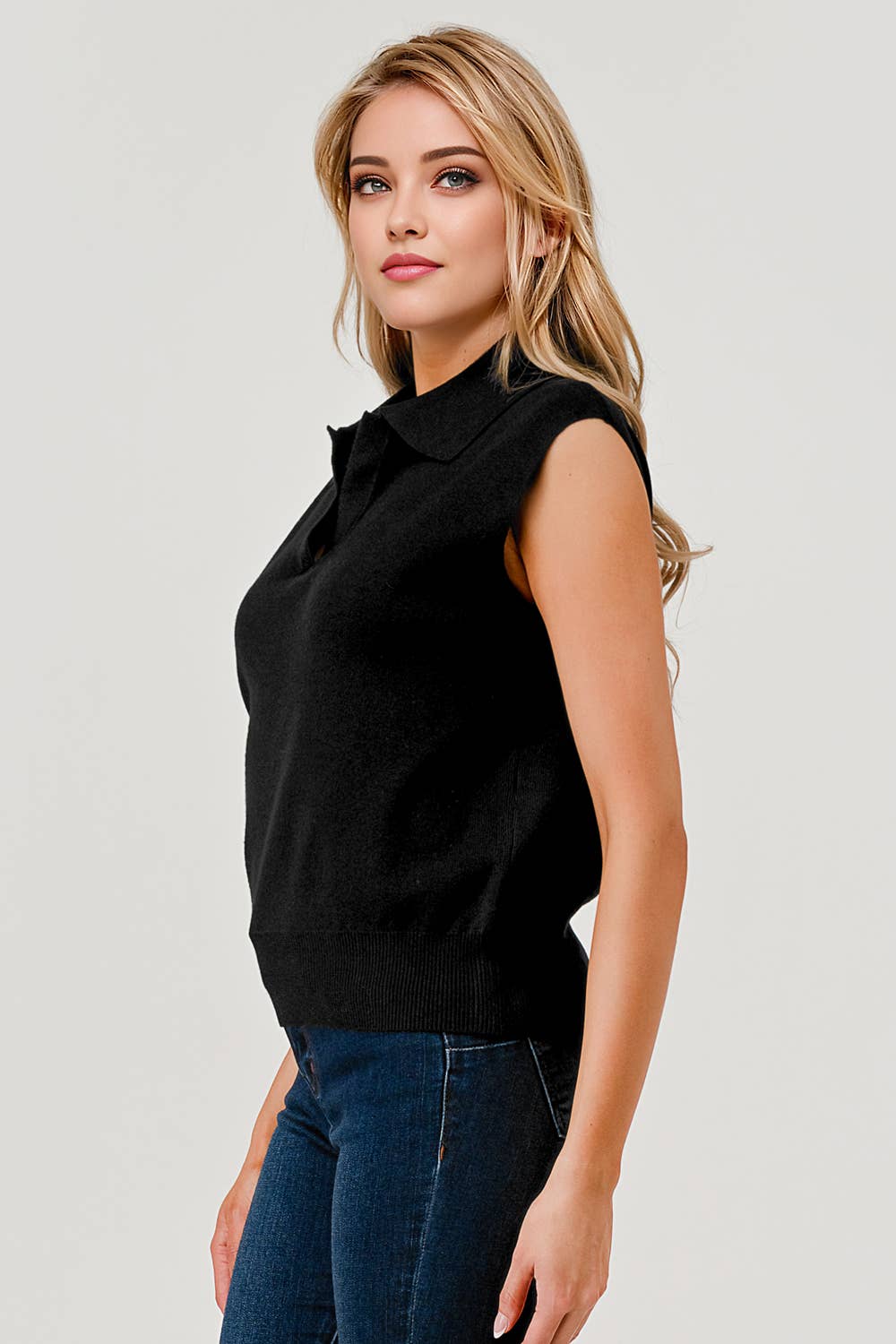 Buttery soft light weight polo collar sweater top. Great for back to school, game day, the office. A versatile addition to your wardrobe, this Polo Collar Game Day Sweater Top Black is perfect for any occasion. Made from buttery soft and lightweight material, it offers comfort and style. From back to school to game day to the office, this sweater top is the ideal choice for a chic and polished look.