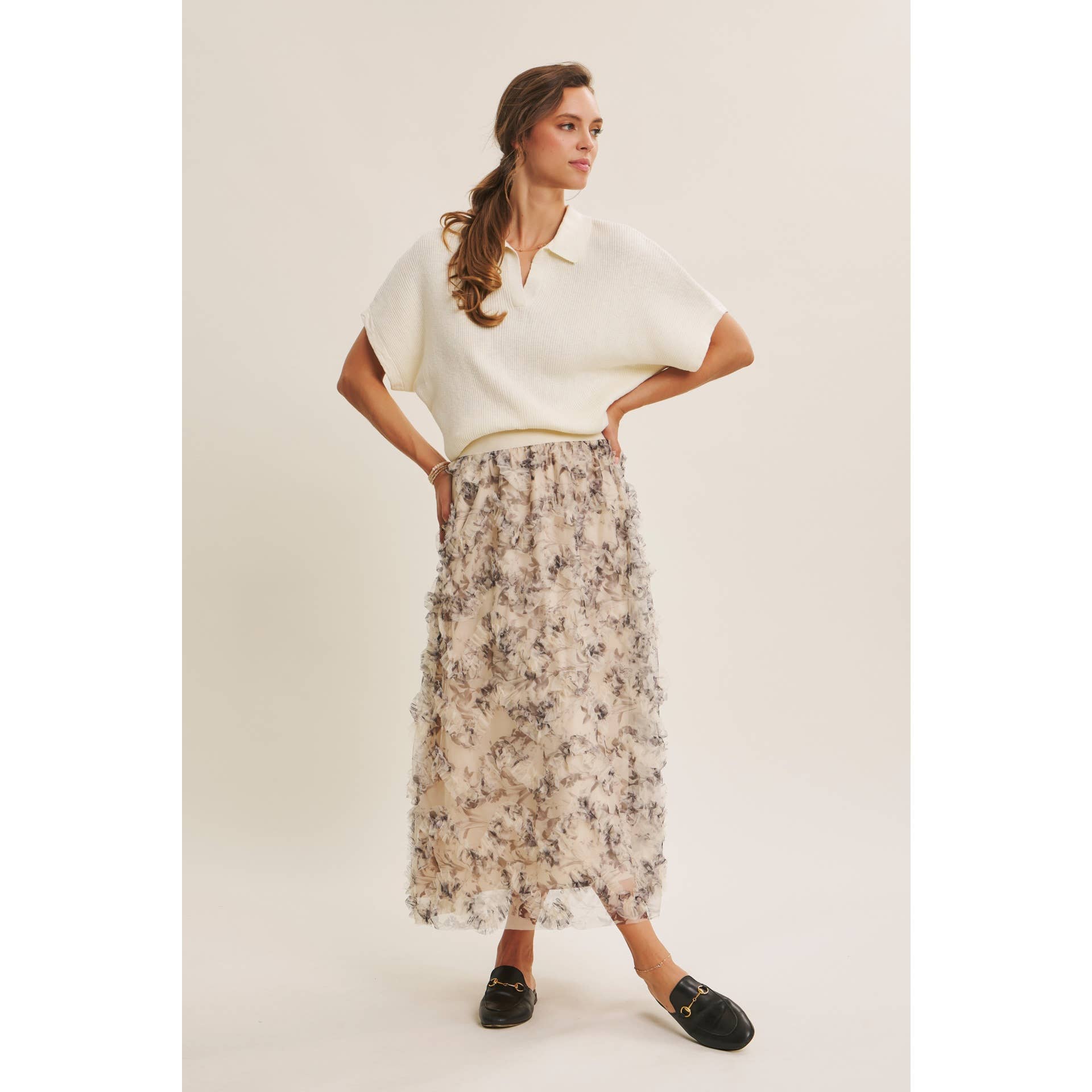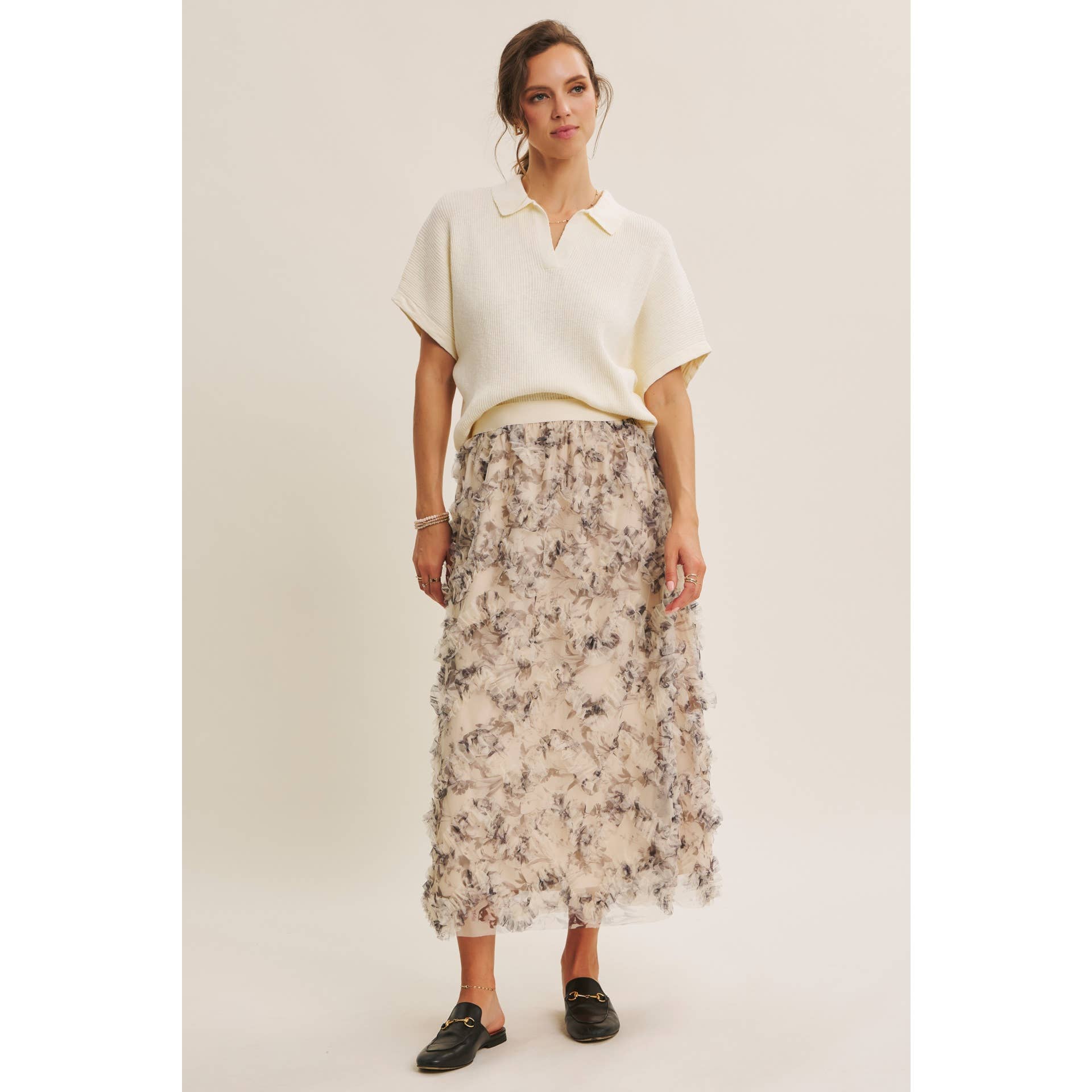Timeless and effortless, this collared slub rib knit sweater is an instant favorite for the FW season. Featuring a split neckline, dolman short sleeves, and a boxy fit, it balances structure with ease for a polished yet relaxed look. The soft cotton-viscose blend brings breathable comfort, making it a perfect transitional knit that carries from late summer into crisp autumn days. Whether styled with tailored trousers for work, layered over romantic skirts for a soft seasonal look, or paired with denim for casual weekends, this versatile sweater offers endless outfit possibilities. With its bestselling silhouette reimagined in a new version, it’s a proven piece that keeps customers returning Features - Split neck - Collared - Slub rib sweater knit - Short dolman sleeves - Cotton viscose blend Size + Fit Model is 5'9.5" and wearing a size Small Please refer to our size chart.